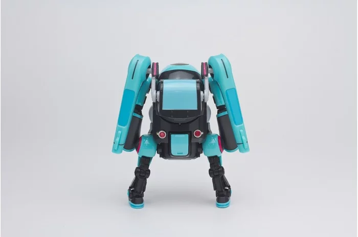 Miku is dwarfed by her new companion 35, but they could be mistaken for twins! Both enjoy the same color scheme, twin tails, and 35 even has its own leek! The Mechatro is also capable of multiple poses and even has a compartment that opens with a microphone, perfect for Miku to perform singing shows in the safety of an adorable robot!