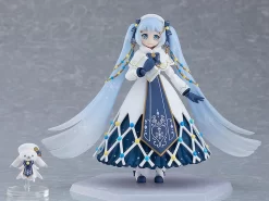 This year marks the 12th anniversary of Snow Miku, and once again her outfit was selected by fans through an online vote. Based on a design by illustrator Annatsu Mikan, her outfit themed after “illumination in the image of Hokkaido snow” has been faithfully recreated in detail in figma size, and she features smooth articulation with flexible plastic used in key areas for maximum poseability. Included are two smiling faces and a singing face, her songbook, angel wing parts, Rabbit Yukine, and optional hand parts so you can recreate a variety of fun poses. Add this angelic songstress to your collection!